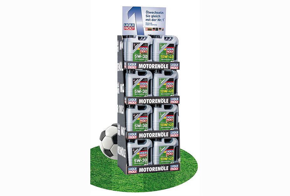 Von dieser Erfahrung sollen Fach- und Verbrauchermärkte profitieren und mit ihrem Abverkauf in die Offensive gehen. Das LIQUI MOLY Weltmeisteröl wird in zwei Viskositätsklassen im gut sortierten Fachhandel sowie in Verbraucher- und Baumärkten im 24er-Display zu je 12 x 5-Liter-Kanister angeboten.