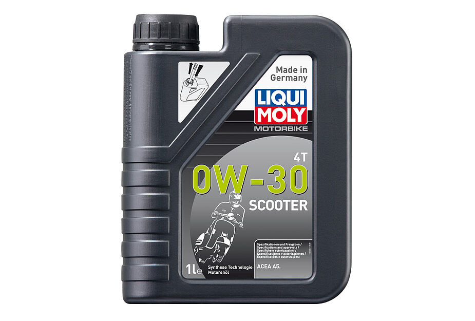 El nuevo aceite Motorbike 4T OW-30 Scooter de LIQUI MOLY, basado en tecnología de síntesis, previene la formación de depósitos y tiene una extrema estabilidad al cizallamiento. Garantiza el máximo rendimiento y protege el motor en todas las condiciones de funcionamiento. Garantiza aún una excelente lubricación, una limpieza eficaz del motor y un desgaste mínimo. Es ideal para motores de scooter modernos con y sin tecnología multiválvulas. El nuevo aceite ha sido desarrollado para motores de 4 tiempos refrigerados por agua y expuestos a condiciones de funcionamiento normales o exigentes.
