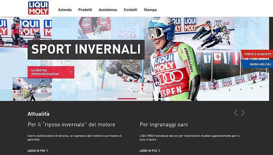 Il sito web italiano del produttore di oli si presenta con un nuovo design