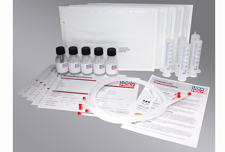 Damit es gar nicht erst zu Schäden kommt, sollte die Untersuchung früher vorgenommen werden. Das Prozedere ist so einfach wie die exakte Beurteilung aussagekräftig ist: Der Außendienstmitarbeiter entnimmt gemäß einem speziell erarbeiteten Leitfaden eine Probe am Fahrzeug. Diese füllt er in ein Fläschchen aus dem Untersuchungsset, kennzeichnet es, füllt einen Probenbegleitschein aus und gibt alles in einer gepolsterten Versandtasche zur Analyse ins Labor von LIQUI MOLY. Im Anschluss an die Auswertung bekommt der Kunde vom Außendienstmitarbeiter die Analysewerte der Probe samt Kommentar eines Technikers. „Der für den Bericht zuständige Experte ist gleichzeitig der persönliche Ansprechpartner für alle weiteren Fragen“, erläutert Klaus Stahl.