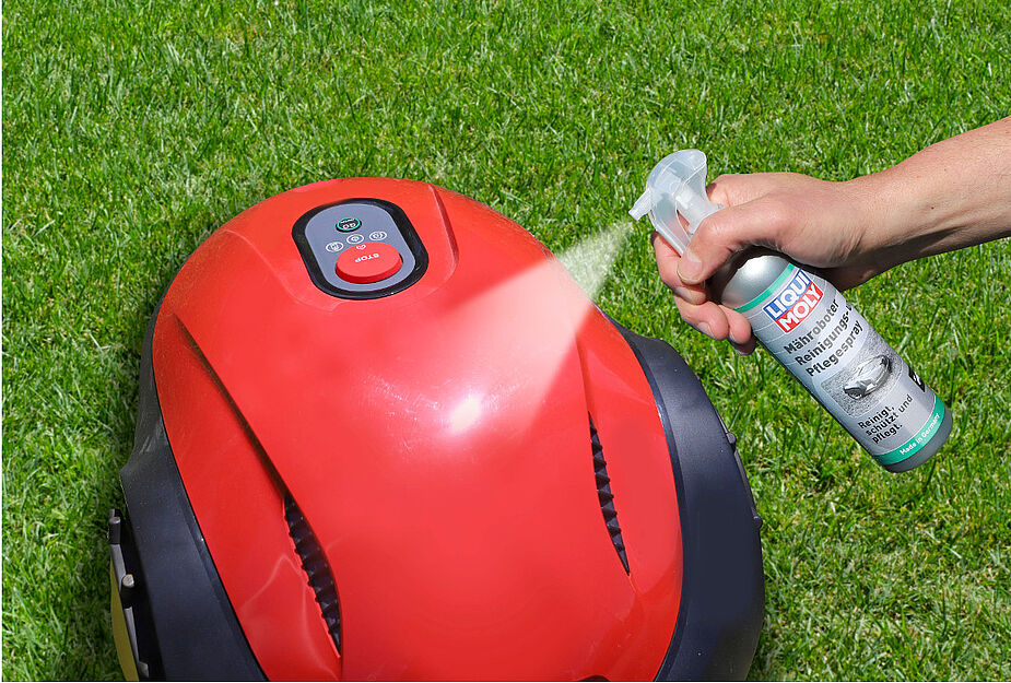 Das Mähroboter Reinigungs- und Pflegespray von LIQUI MOLY ist farblos und sollte mindestens einmal pro Monat aufgetragen werden. Es schützt den Mähroboter nicht nur, es reinigt ihn auch kratz- und streifenfrei. So bleibt der teure Gartenhelfer gut in Schuss und hält lange. Und was ihm draußen hilft, das tut auch seinen Artgenossen im Haus gut. Das Spray von LIQUI MOLY ist auch zur Pflege von Saugrobotern geeignet.