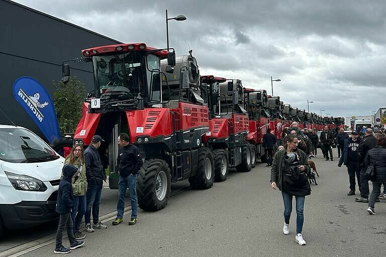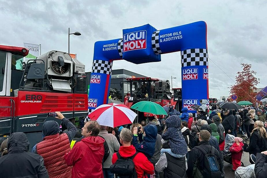 In Neustadt an der Weinstraße haben Winzer am Samstag den Eintrag ins Guinnessbuch der Rekorde geschafft. Mindestens 100 Traubenvollernter mussten dazu in einer Parade auffahren. Diese Zahl wurde deutlich übertroffen. Unser blau-rotes Logo durfte natürlich nicht fehlen.