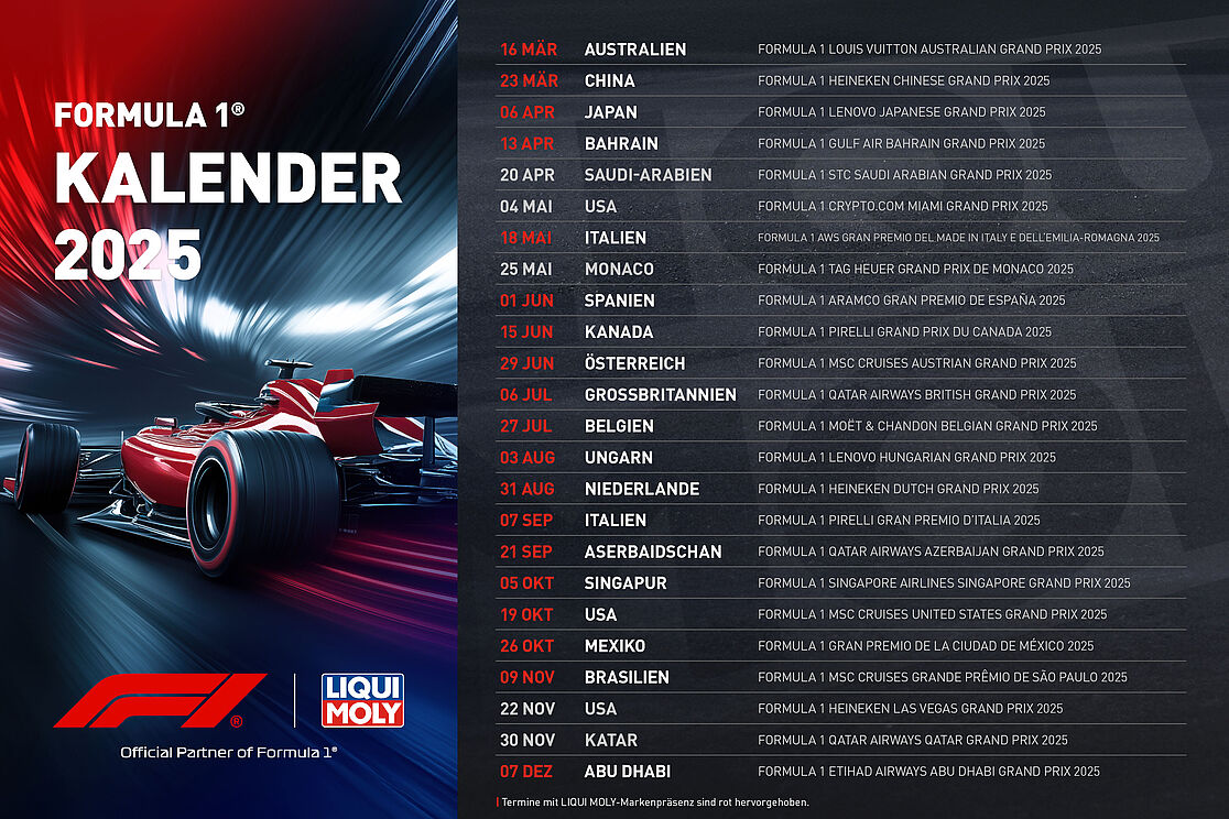 Die Königsklasse des Motorsports entfacht weltweite eine Leidenschaft, die ihresgleichen sucht. Die Verbindung zwischen den beiden Weltmarken Formula 1® und LIQUI MOLY liegt in ihrer gemeinsamen Passion für Perfektion: Die Formula 1® ist Premium im Motorsport und LIQUI MOLY ist Premium bei Ölen und Additiven. Unsere beiden Marken vereint aber vor allem der konstante Wille, so viele Menschen wie möglich auf der ganzen Welt zu begeistern.