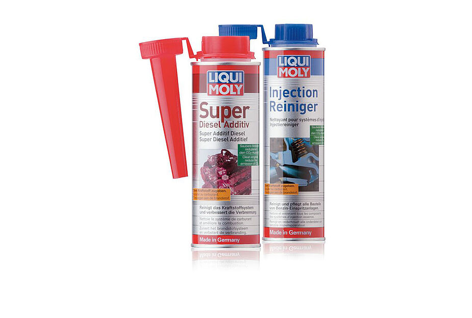 Die Auswirkungen schwankender Kraftstoffqualitäten lassen sich mithilfe von Additiven minimieren. Für Benzin betriebene Fahrzeuge empfiehlt David Kaiser den Injection Reiniger: „Er entfernt Ablagerungen im Einspritzsystem. Das verbessert die Verbrennung und führt zu sinkendem Spritverbrauch und niedrigeren Emissionenswerten.“ Der LIQUI MOLY-Benzinzusatz verbessert die Gasannahme und trägt dazu bei, dass der Motor sein ursprüngliches Leistungsvermögen zurückbekommt. Außerdem schützt das Additiv vor Korrosion. Auch für Dieselfahrzeuge gibt es Kraftstoffzusätze. Das Pendant zum Injection Reiniger ist das Super Diesel Additiv, das ebenfalls Ablagerungen im Einspritzsystem und im Brennraum entfernt und deren Neubildung verhindert. Der Dieselzusatz erhöht die Cetanzahl und verbessert die Zündwilligkeit des Kraftstoffs für einen ruhigeren Motorlauf. „Ein spezieller Schmierverbesserer schützt die Einspritzpumpe des Fahrzeugs auch dann, wenn einmal Dieselkraftstoff getankt wurde, der die geforderten Schmiereigenschaften missen lässt“, so der Forschungsleiter.
