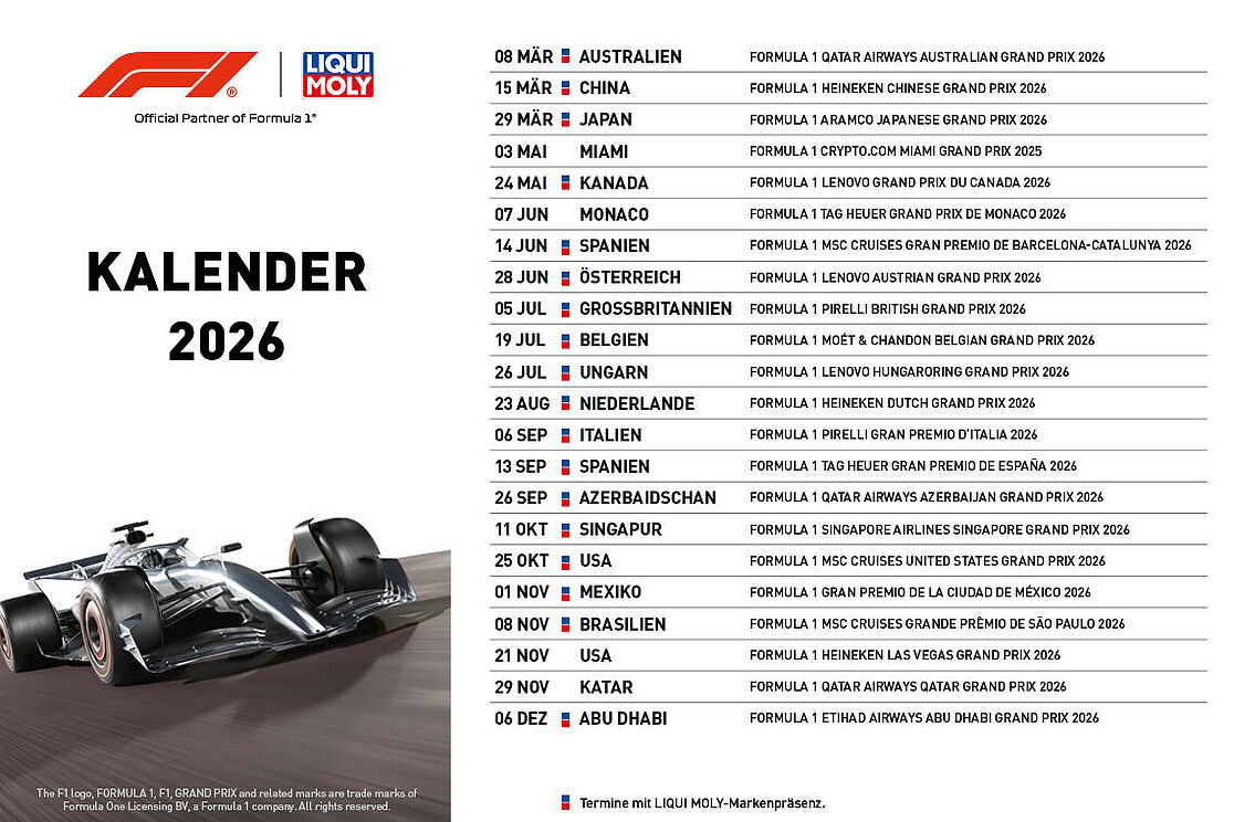 Die Königsklasse des Motorsports entfacht weltweite eine Leidenschaft, die ihresgleichen sucht. Die Verbindung zwischen den beiden Weltmarken Formula 1® und LIQUI MOLY liegt in ihrer gemeinsamen Passion für Perfektion: Die Formula 1® ist Premium im Motorsport und LIQUI MOLY ist Premium bei Ölen und Additiven. Unsere beiden Marken vereint aber vor allem der konstante Wille, so viele Menschen wie möglich auf der ganzen Welt zu begeistern.