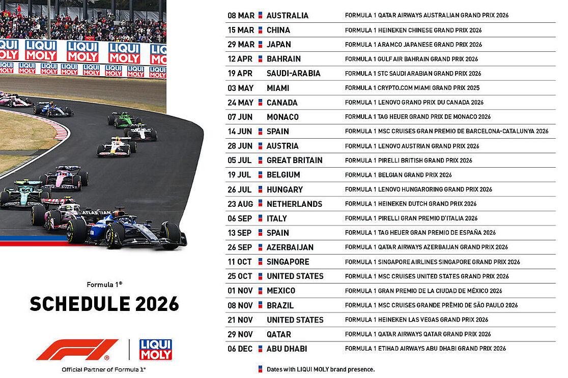 Formula 1® is now an established sponsorship for us. About thirty years ago, we could already be seen on the rear wing of the Mercedes-Sauber. In 2002, we also joined Team Jordan-Honda as a sponsor. Since 2019, LIQUI MOLY has been represented in the popular racing series as "Official Sponsor". Since the 2023 season, the title has been "Official Partner".