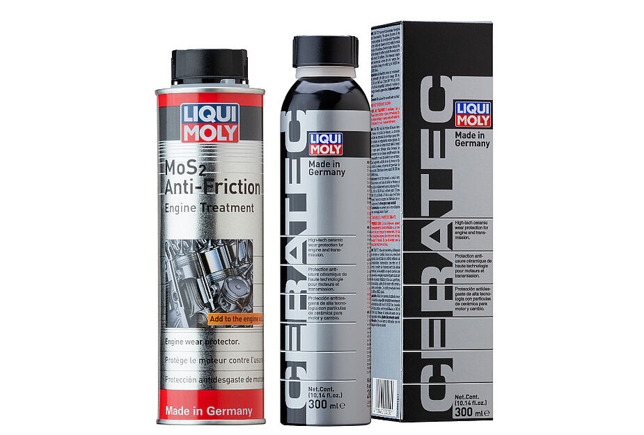 While MoS2 Anti-Friction Engine Treatment protects only physically, LIQUI MOLY Cera Tec comes with an additional protection: it contains so-called friction modifiers, which have a smoothing effect on the metal surfaces with which they connect in the microscopic area. And it also contains solid lubricants for physical protection. These consist of microscopic ceramic particles, which give the additive a beige color. They are so small, that they can easily pass through the oil filter. "This double protection makes Cera Tec a highly effective additive, the effect of which lasts for up to 30,000 miles," says David Kaiser. "This makes it particularly economical to use." It is the first choice for newer vehicles.