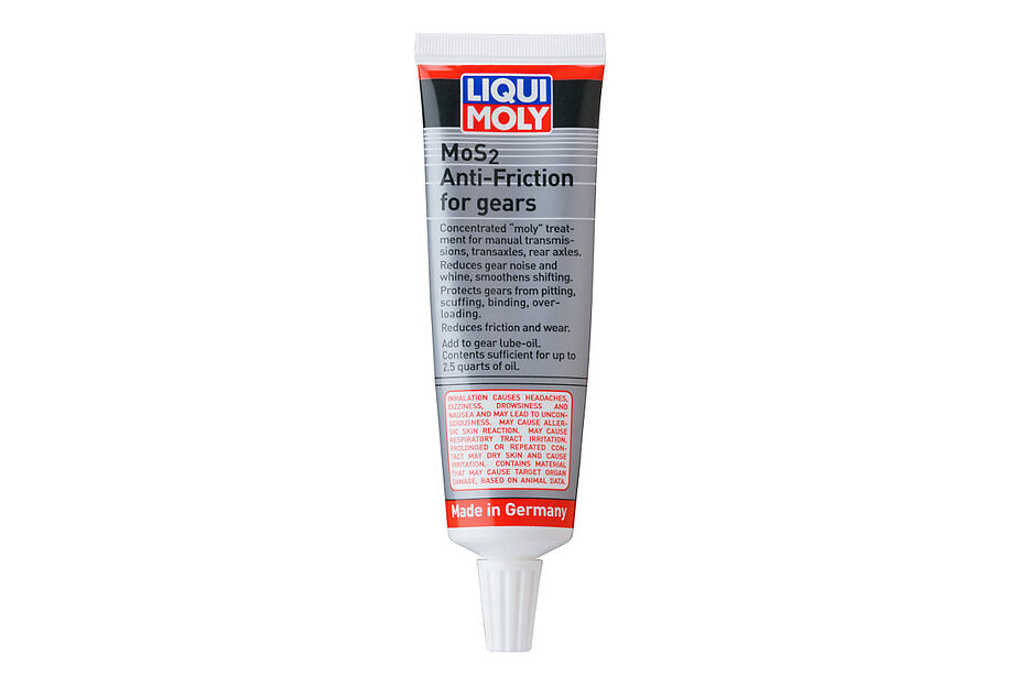 The MoS2 Antifriction for Gears simply has to be added to the gearbox oil. There it reduces wear and makes shifting easier. It includes the solid lubricant MoS2, which balances out unevenness of the metal surfaces and reduces wear. Furthermore, the thermal load in the gearbox is made smaller. It does not contain any corrosive chemical components, which could attack the sensitive non-ferrous metals in the gearbox. That's why it can still be used without any problems in classic cars and in new vehicles with synchronised gearboxes, too, with its outstanding wear protection properties.