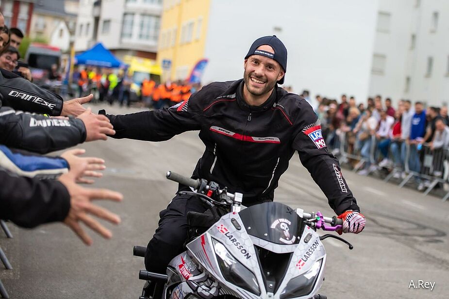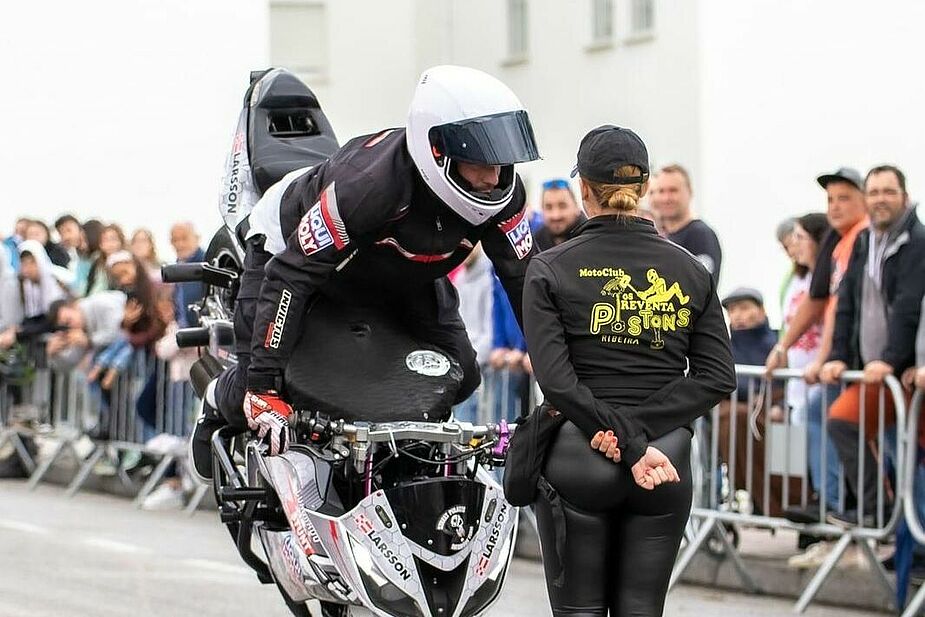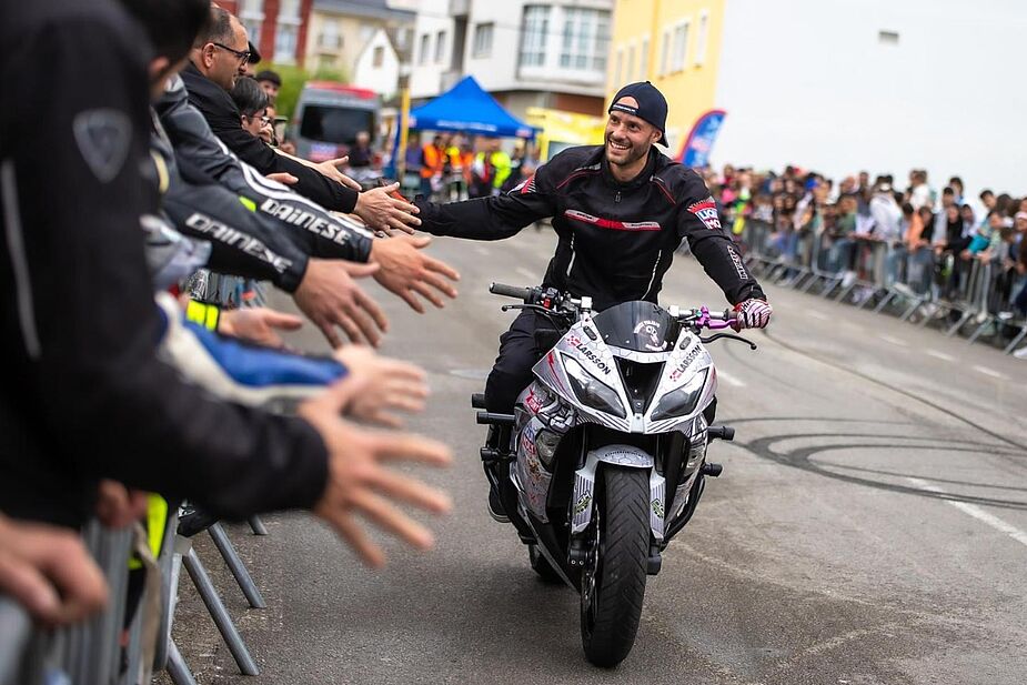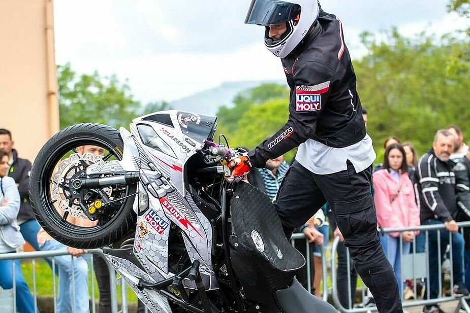 Una vez más, ante cientos de personas, José Ángel Cuadrado encendió al público y realizó varios de sus increíbles trucos sobre las motos decoradas de LIQUI MOLY.