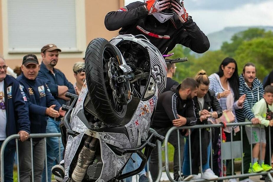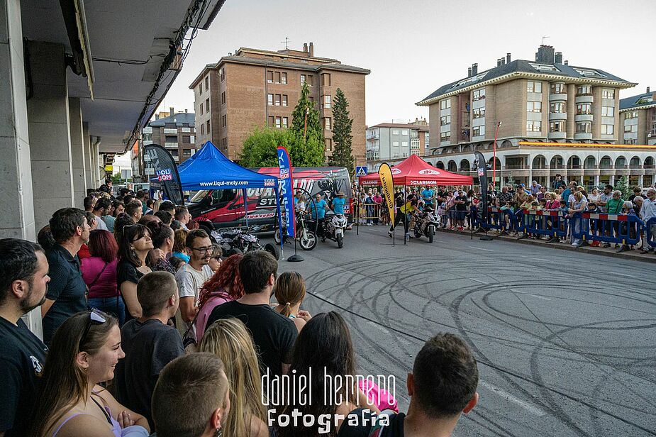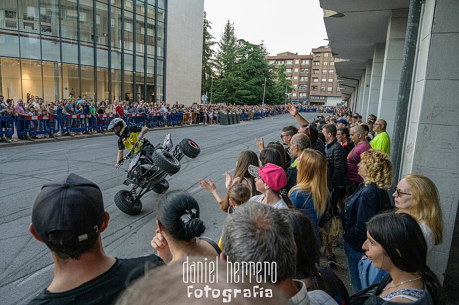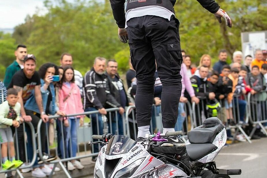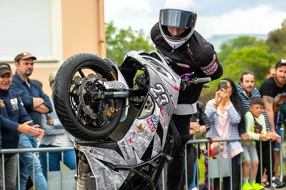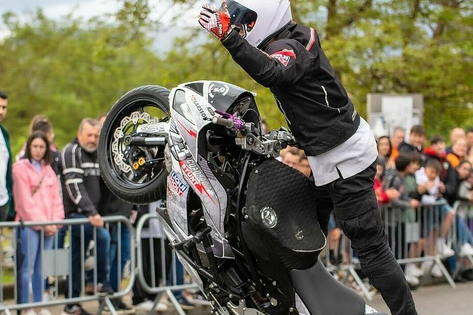 Después de sorprender a los habitantes de Guardo, en la provincia de Palencia, Cuadrado Stunt acudió a La Bañeza para realizar otra impresionante demostración de sus habilidades sobre la moto.