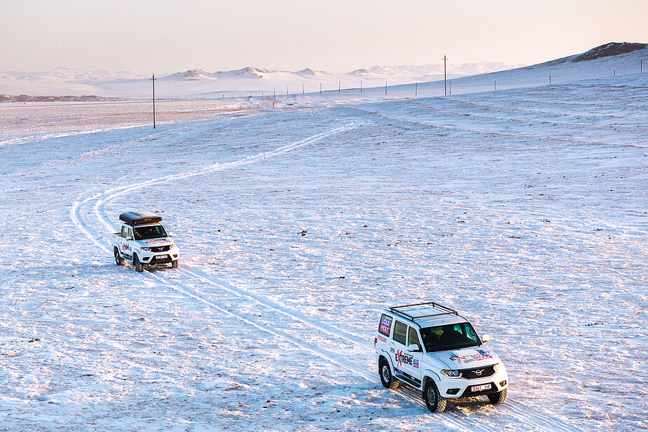 Prendre le volant et explorer la nature sauvage : Le circuit tout-terrain de onze jours « Pistes de glace vers la taïga » de LIQUI MOLY Extreme est un voyage autoguidé à travers la Mongolie. Dans des véhicules tout-terrain mis à disposition, les participants explorent le paysage rude et époustouflant en hiver, loin des destinations touristiques habituelles.