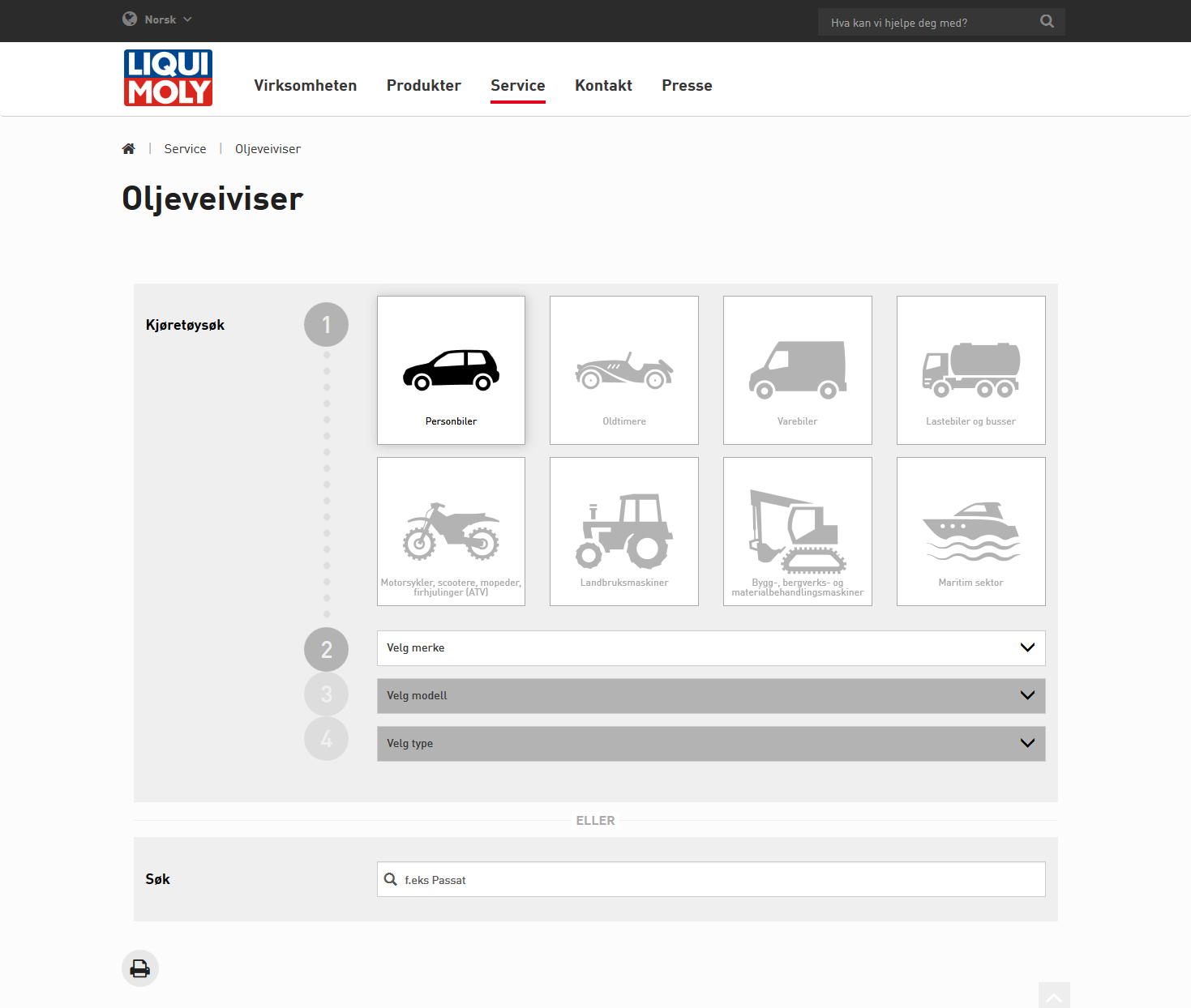 «Oljeveiviseren er den delen av LIQUI MOLYs nettsted som besøkes mest», påpeker Günter Hiermaier, daglig leder hos LIQUI MOLY. «Hit kommer det hver dag 5000 brukere – både verkstedsmedarbeidere og vanlige bilister – som lurer på hvilken olje de bør gå for.» Du velger merke, modell og motor med bare noen få klikk, og får deretter en liste over egnede motoroljer. I dag er det nemlig på ingen måte ett fett hvilken motorolje man bruker. Å fylle feil olje er som å montere en reservedel som ikke passer. Konsekvensene spenner fra tap av garanti, økt slitasje og motorproblemer til store motorskader.