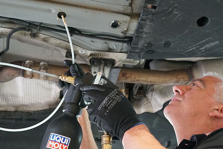 A proteção anticorrosão deve ser impreterivelmente efetuada por um profissional. Alguns tratamentos de superfície ou selagens de cavidades requerem meios e equipamento de oficina especiais, que só devem ser aplicados com a devida formação. A sua oficina de assistência LIQUI MOLY terá todo o gosto em aconselhá-lo e encontrar o pacote adequado para si.