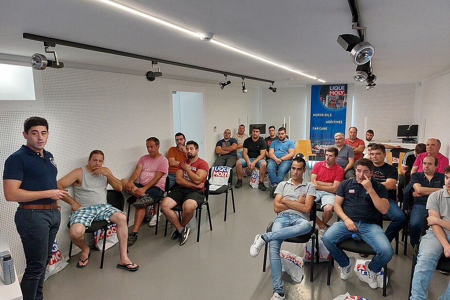 A sessão coordenada por David Monteiro e Bruno Figueiredo, da LM Iberia, serviu para esclarecer dúvidas sobre os lubrificantes e aditivos da LIQUI MOLY, dando aos mecânicos de oficina informações técnicas valiosas quanto às melhores práticas de aplicação, eficiência e rentabilidade.