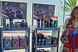O ambiente da oficina foi cuidadosamente ornamentado com bandeiras, sinalética e uma deco-girl LIQUI MOLY.