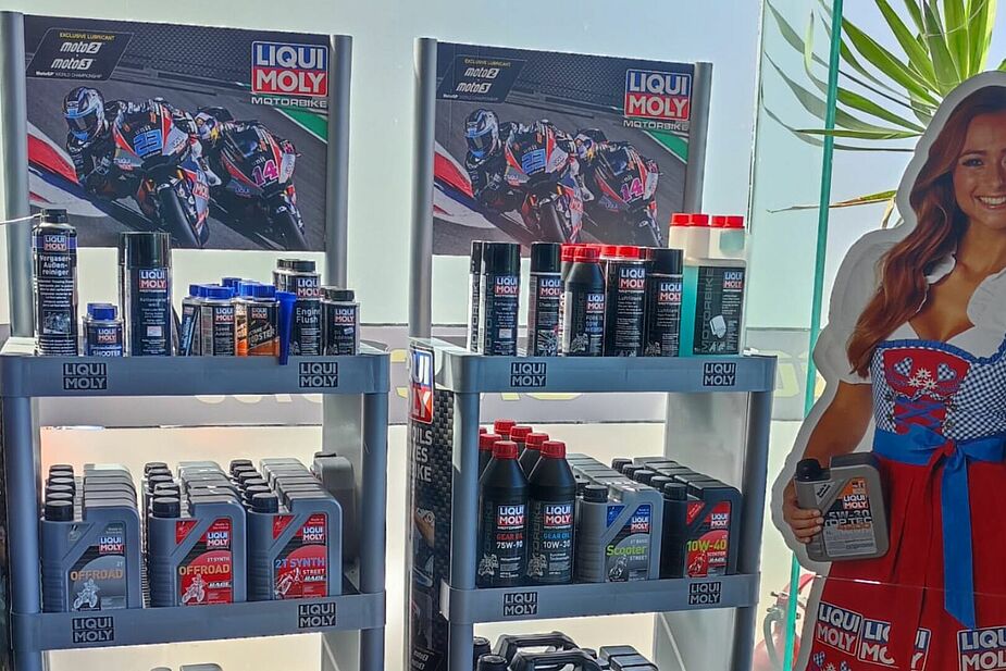Sob a liderança de José Cunha, a oficina de motos já oferecia uma seleção de produtos que incluía, por exemplo, o aditivo Shooter Mos2 e o óleo 10W-50 Off Road Race. Agora, a oficina dispõe dois expositores LIQUI MOLY completos, contendo desde as principais referências de aditivos até os óleos de motor da linha MOTORBIKE. Além disso, uma variedade de produtos de serviço também está disponível, assegurando que todas as necessidades para um serviço de excelência na loja de Castelo de Paiva são atendidas.