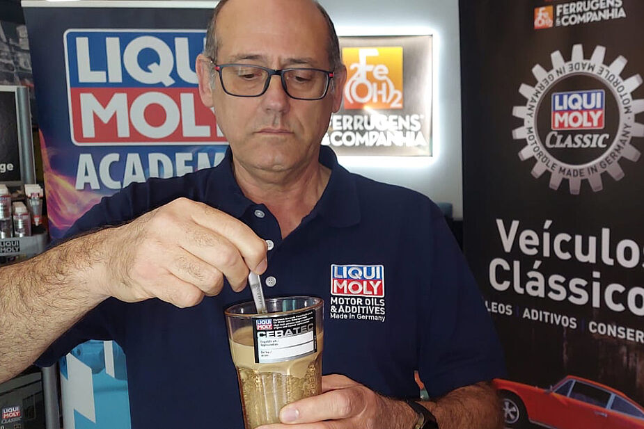 Após focar a sua sessão de formação na linha de lubrificantes de motor para veículos clássicos e nas técnicas de aplicação de aditivos e produtos de serviço, o técnico da LIQUI MOLY Iberia notou imediatamente o feedback positivo da gerência.